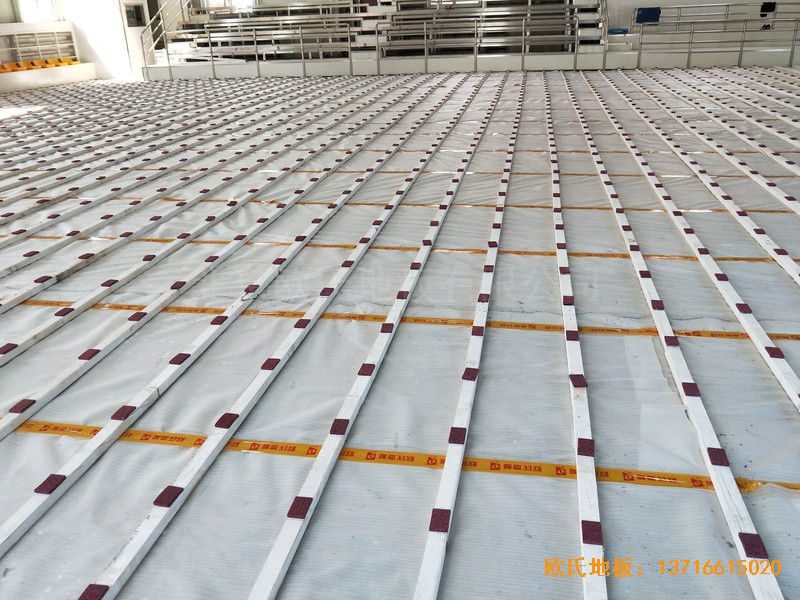 山西晉城宏圣科威公司籃球館運(yùn)動木地板鋪裝工程,建筑總面積為610平米,材料為單層龍骨結(jié)構(gòu)楓樺木A極板,現(xiàn)已鋪設(shè)完成投入使用,該單層龍骨運(yùn)動木地板整體鋪裝效果得到了項(xiàng)目負(fù)責(zé)人和主辦單位領(lǐng)導(dǎo)的一致好評。
